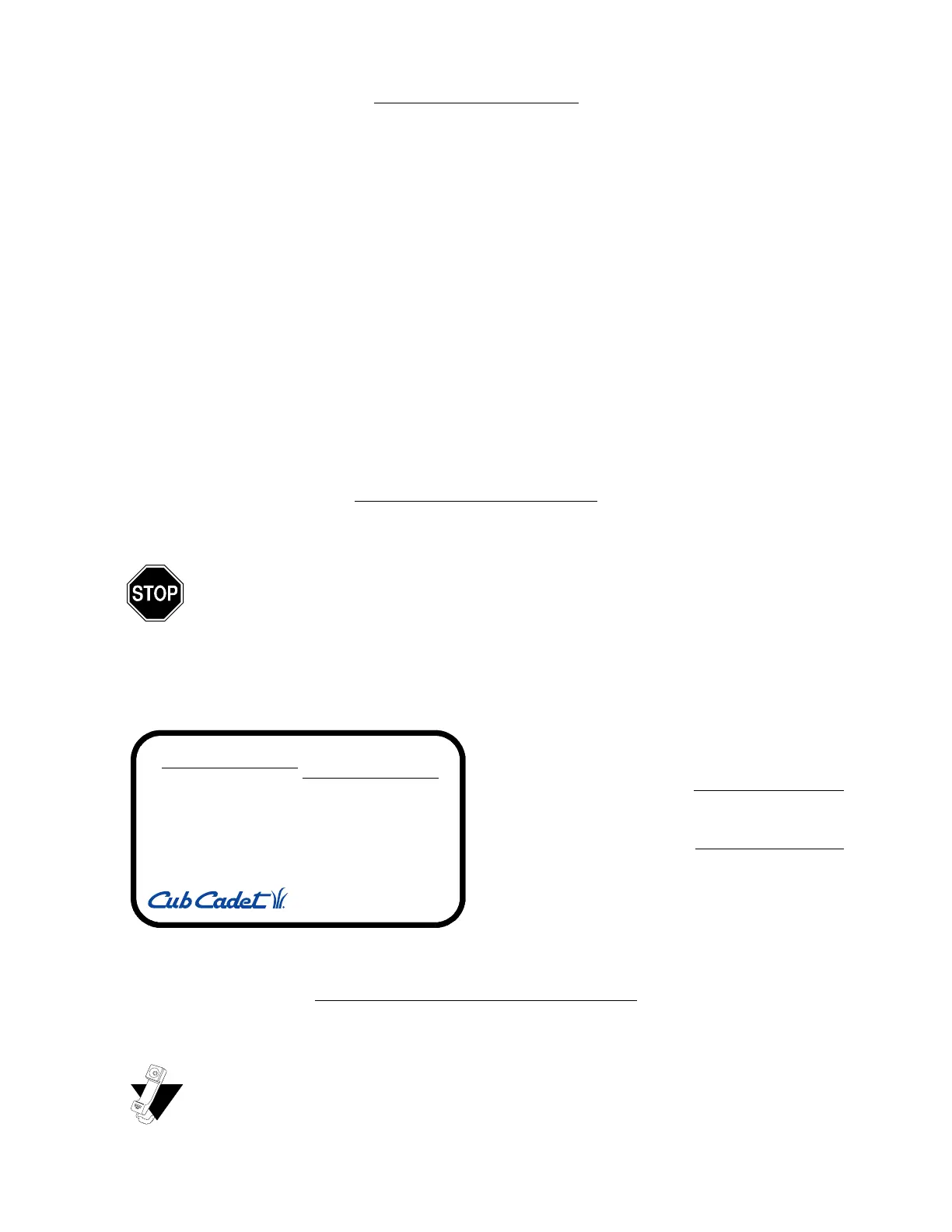 the rear of the deck. A sample model plate is explained below. For future reference, please copy the