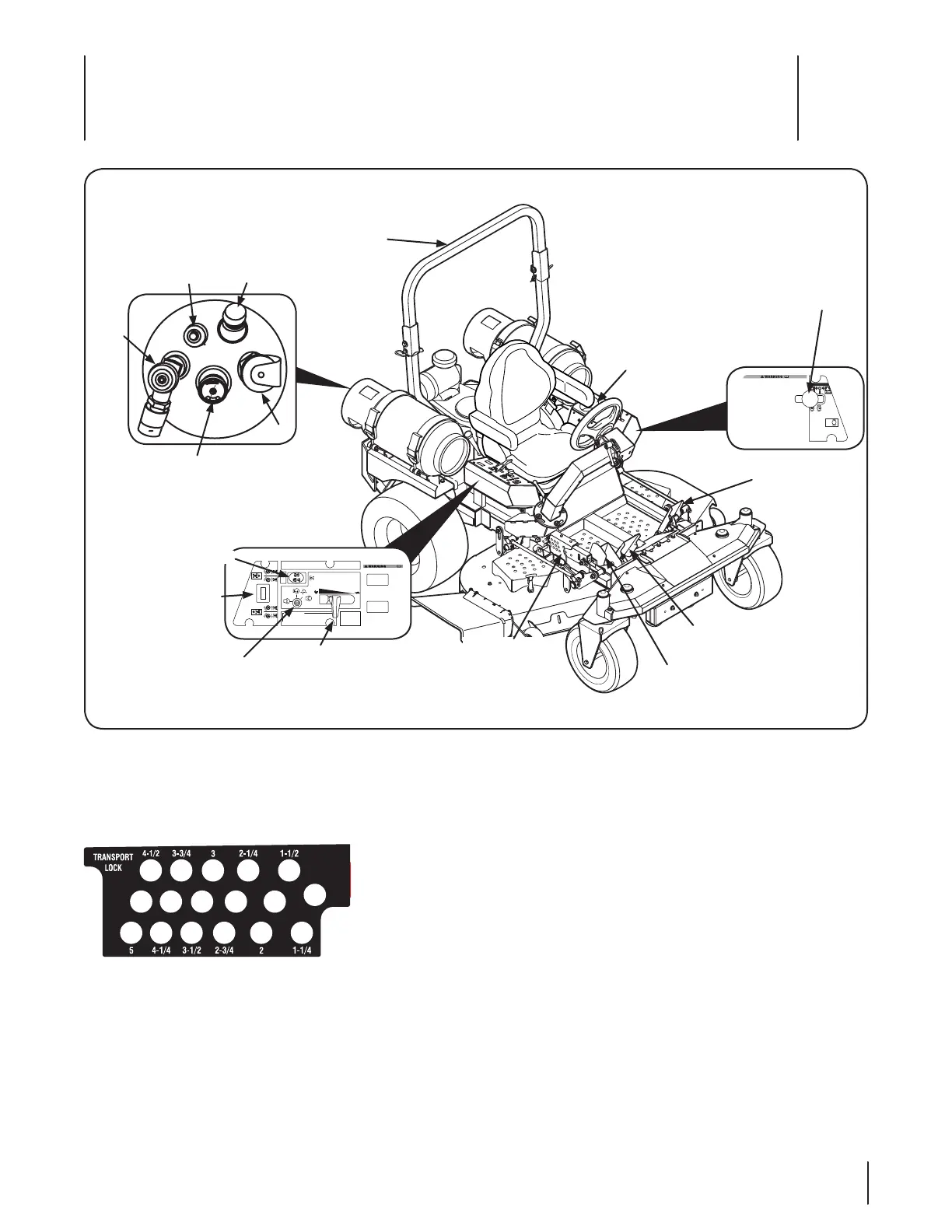 BEFORE LEAVING OPERATOR POSITION, DISENGAGE BLADES, LET SPEED PEDAL