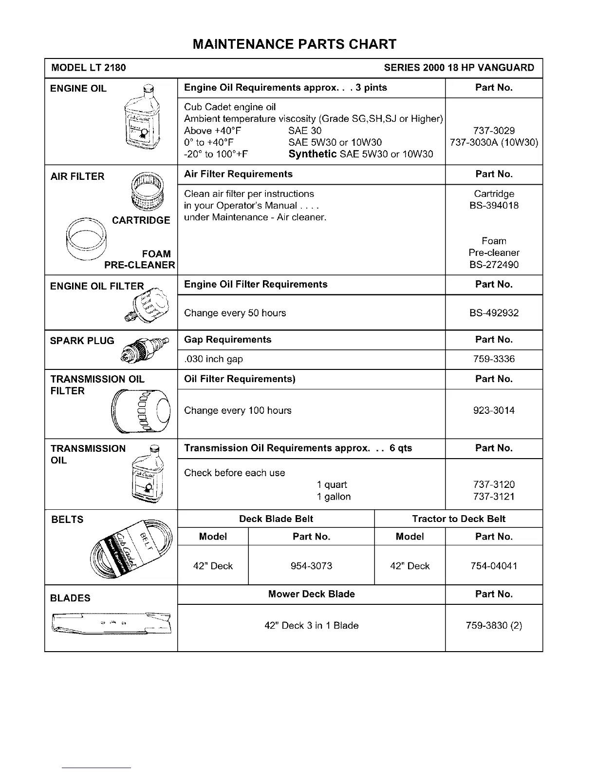 MODEL LT 2180 SERIES 2000 18 HP VANGUARD