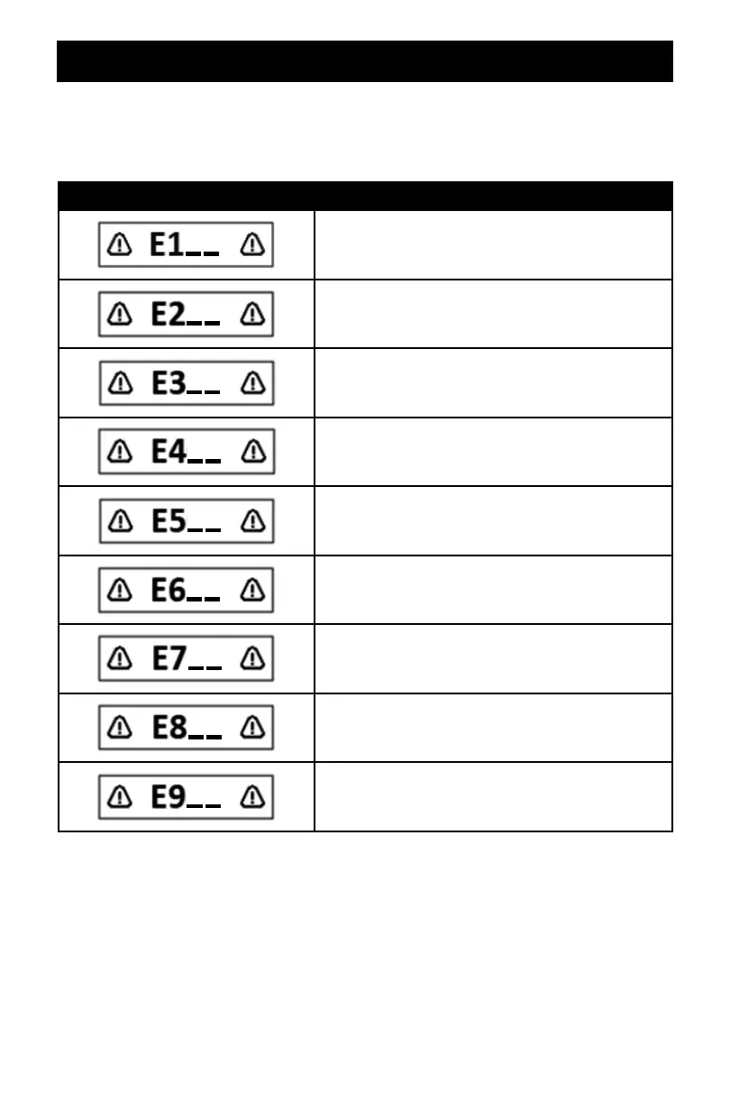 Las fallas se muestran como códigos de cuatro dígitos correspondiendo el primer número (después de la "E") al subsistema afectado. Estas fallas podrían