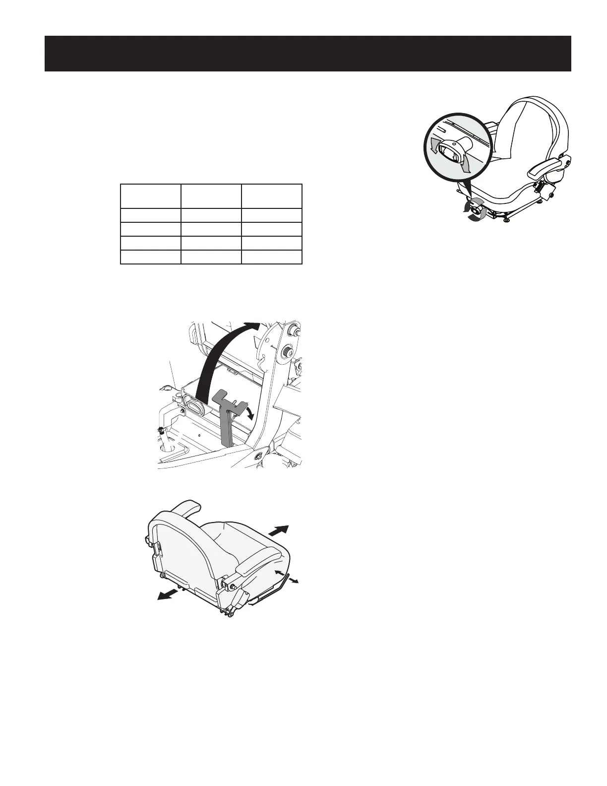 secured by the latch, otherwise, the seat assembly could tilt forward. The Operator