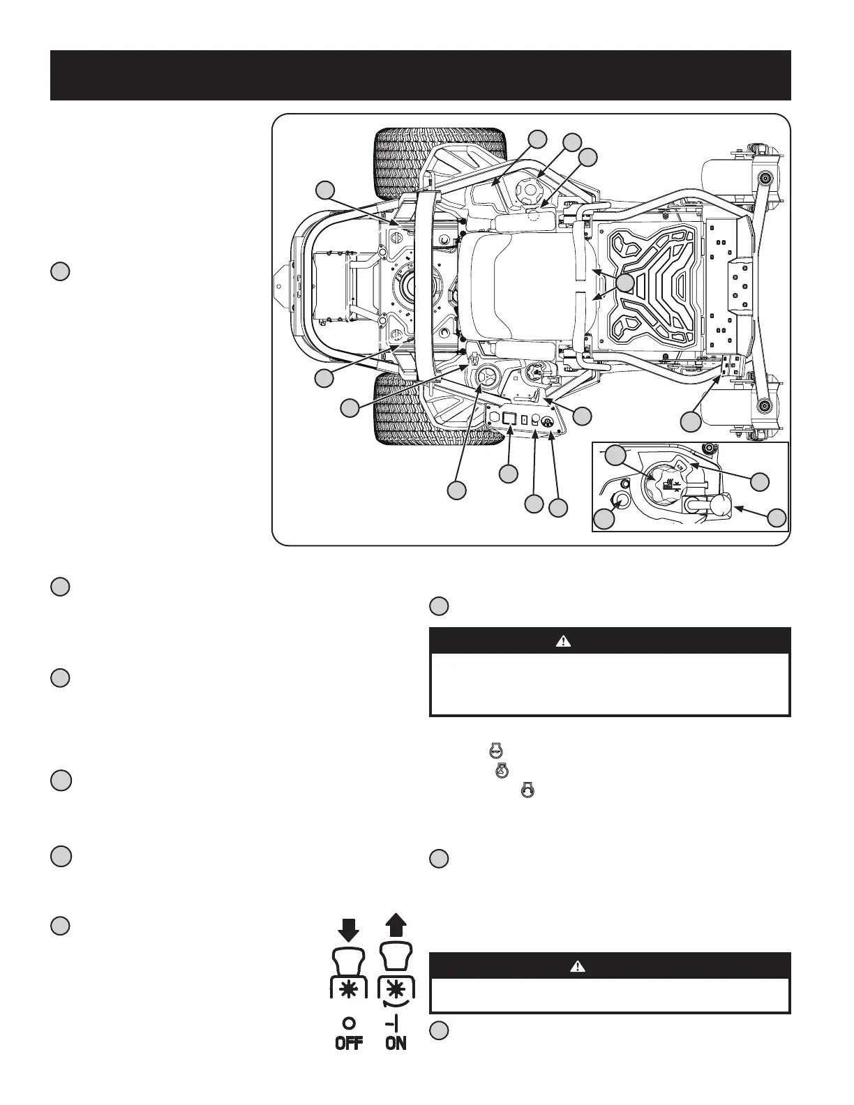 Utilisez ce bouton et la pédale de relevage pour relever et abaisser le plateau de coupe.
