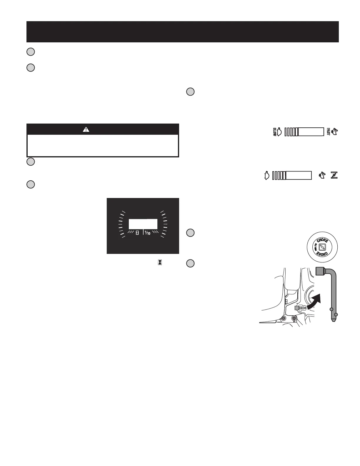 totalmente hacia adelante a la posición "CHOKE" (cebador). Después de arrancar y calentar el