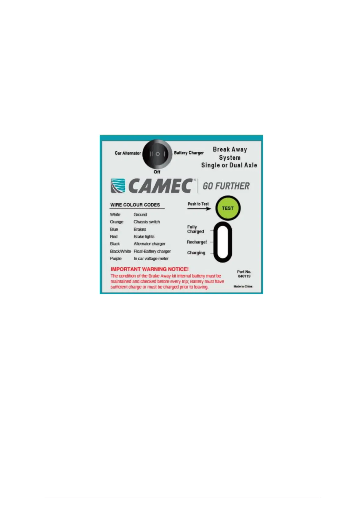 Do not use the break-away system as a parking brake. The battery will be flat after a brief time