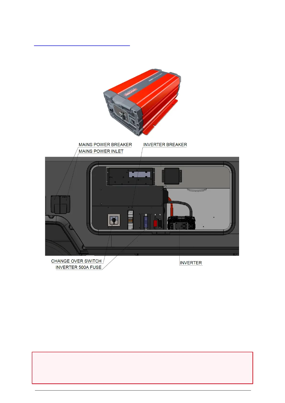 • The 240V breaker switch for the inverter is separate to the mains inlet breaker. This is