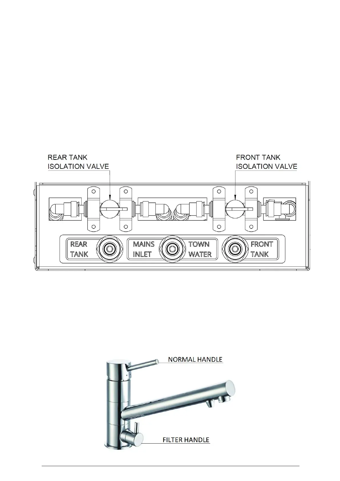 • This water box also includes isolation taps for the front and rear tanks, pictured