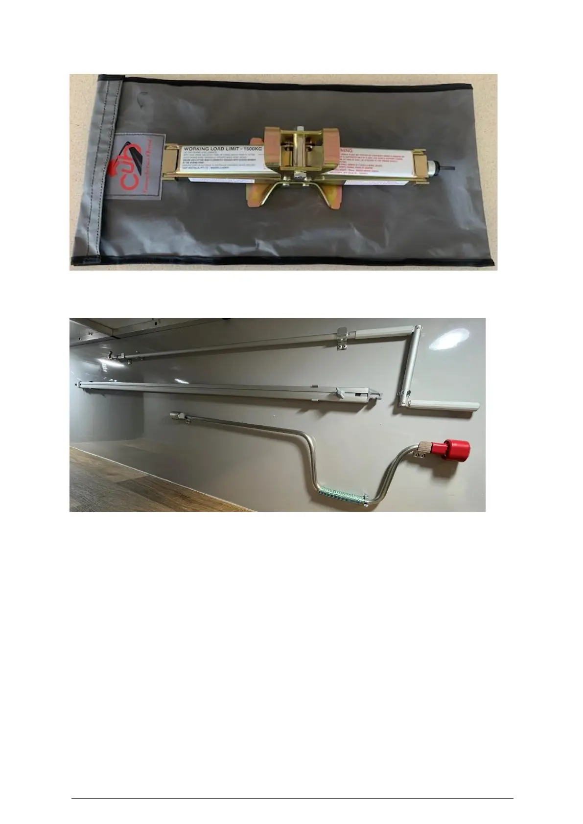 Fiamma Awning Winder, Fiamma Tension Rafter, and AL-KO Winder Handle (Top to Bottom)