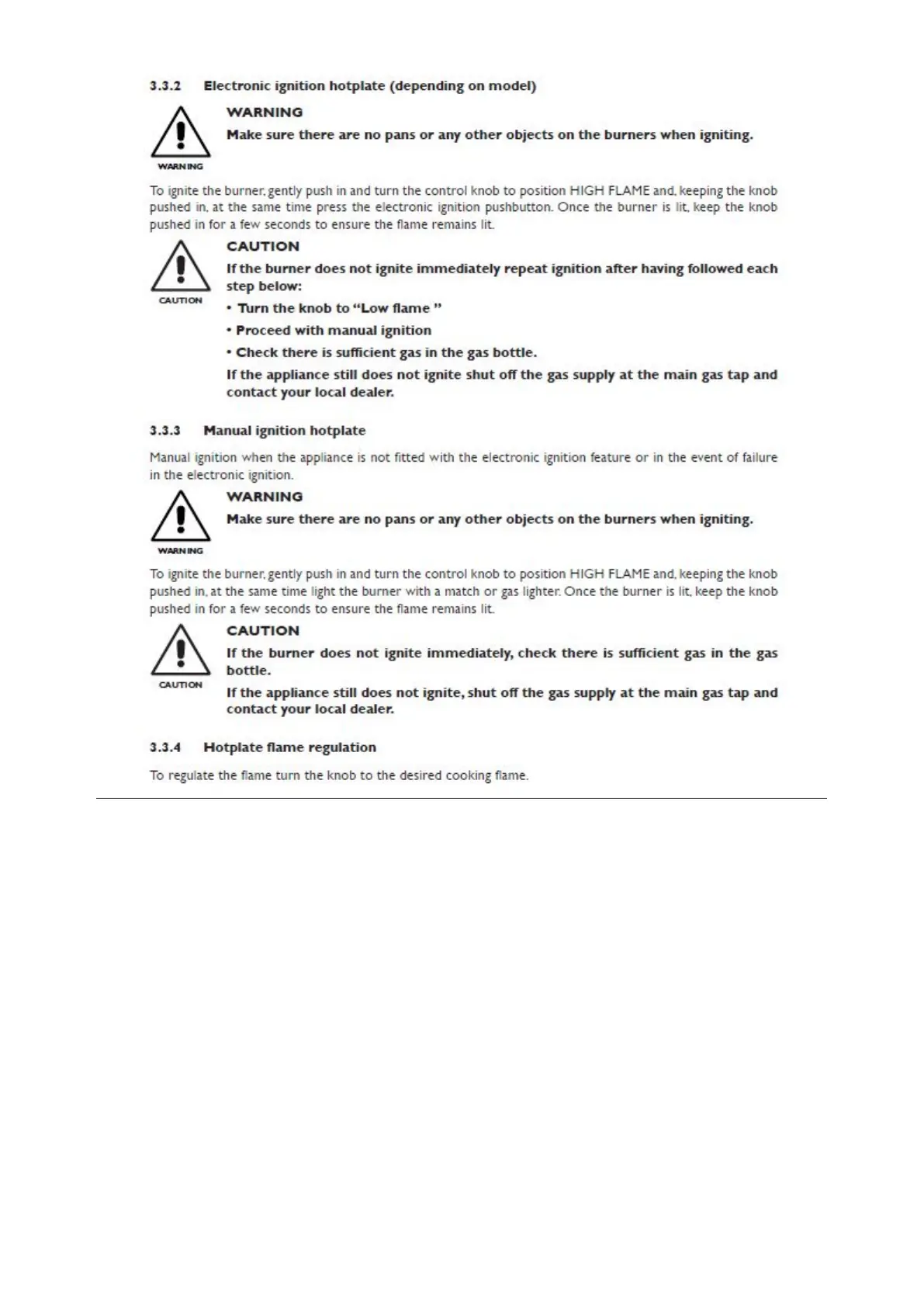Cub EXPLORER - Electronic Ignition Hotplate; Hotplate Flame Regulation; Manual Ignition Hotplate