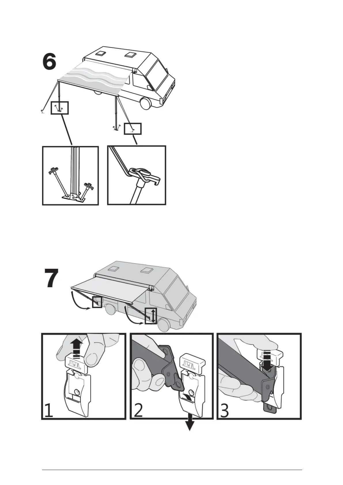 6. To avoid the awning being lifted by an unexpected gust of wind, it is necessary to