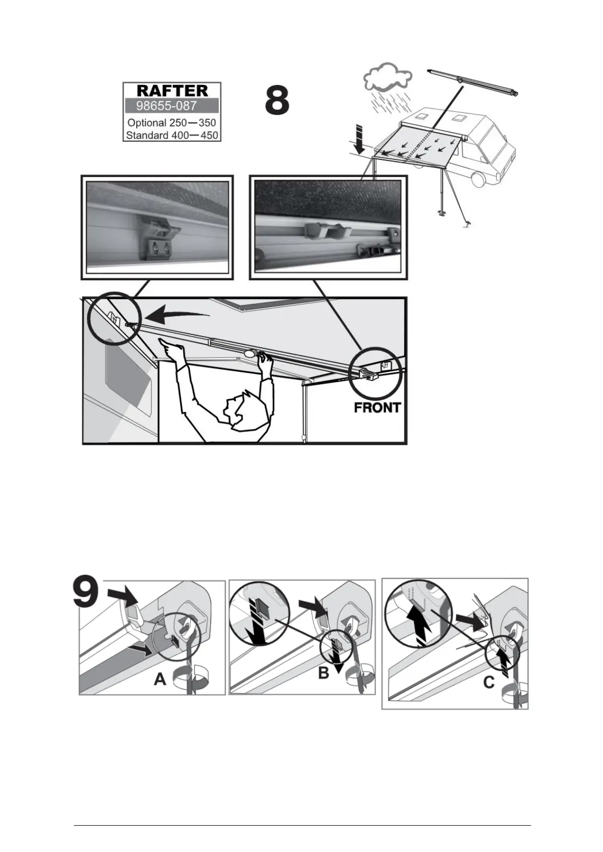 awning, so that water can flow away and place the tension rafter as shown in the