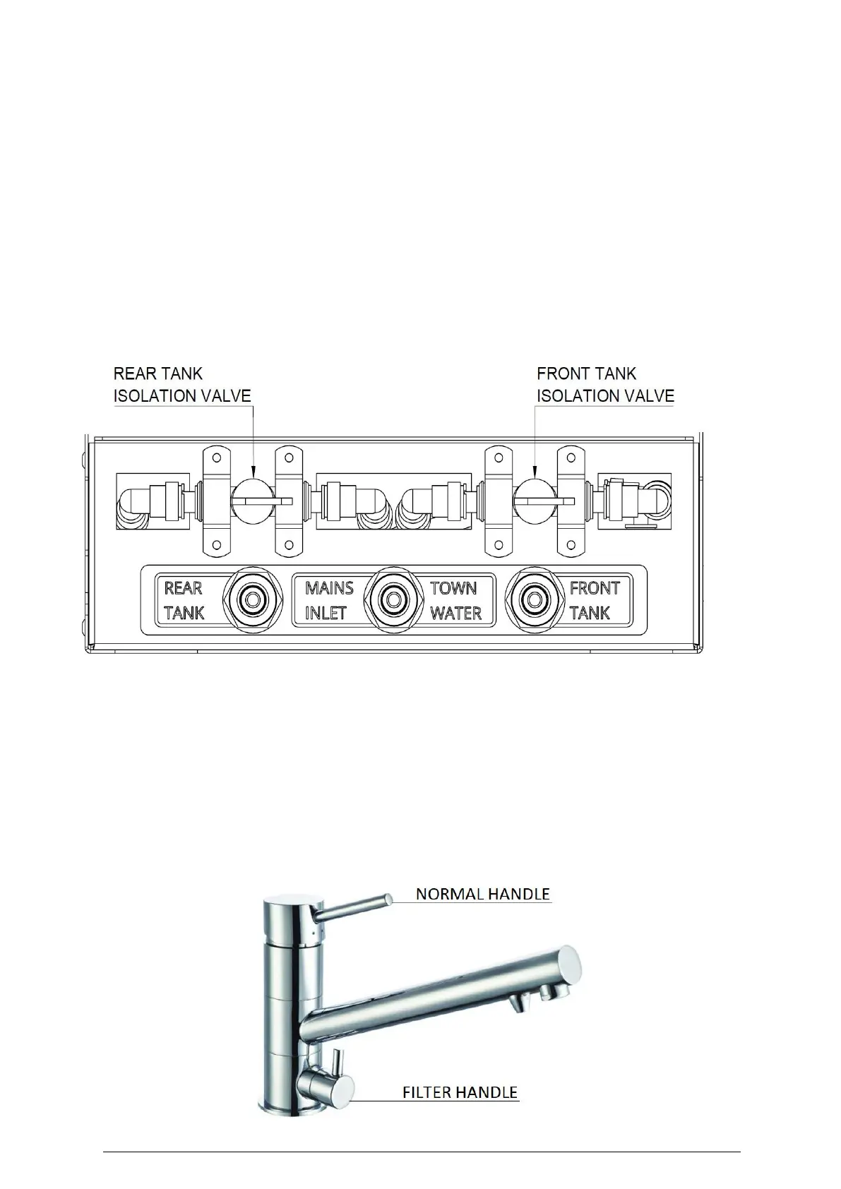 • This water box also includes isolation tap pictured below in the open positions. The
