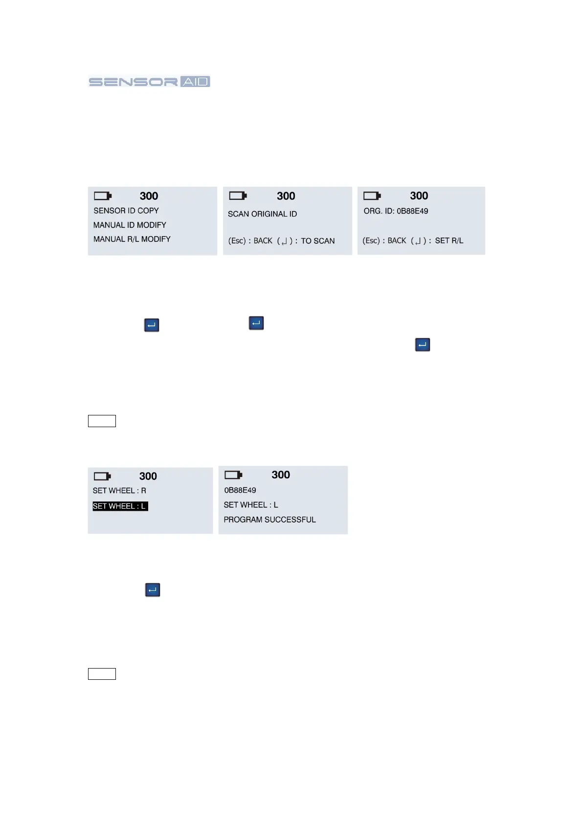 Cub SENSOR AID - 4.3 Manual R;L Modify - Manual Modify a Target sensor; Function Selection for Manual R;L Modify; Check Original ID Process; Scan Complete for R;L Setting