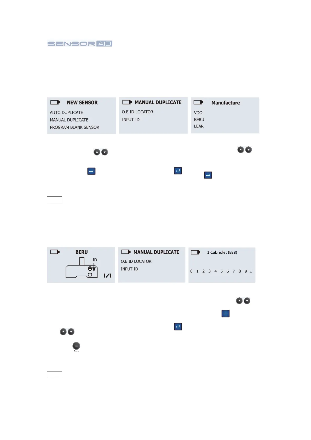 NOTE Duplicate and Program function will only work with CUB’s Sensor-AID and