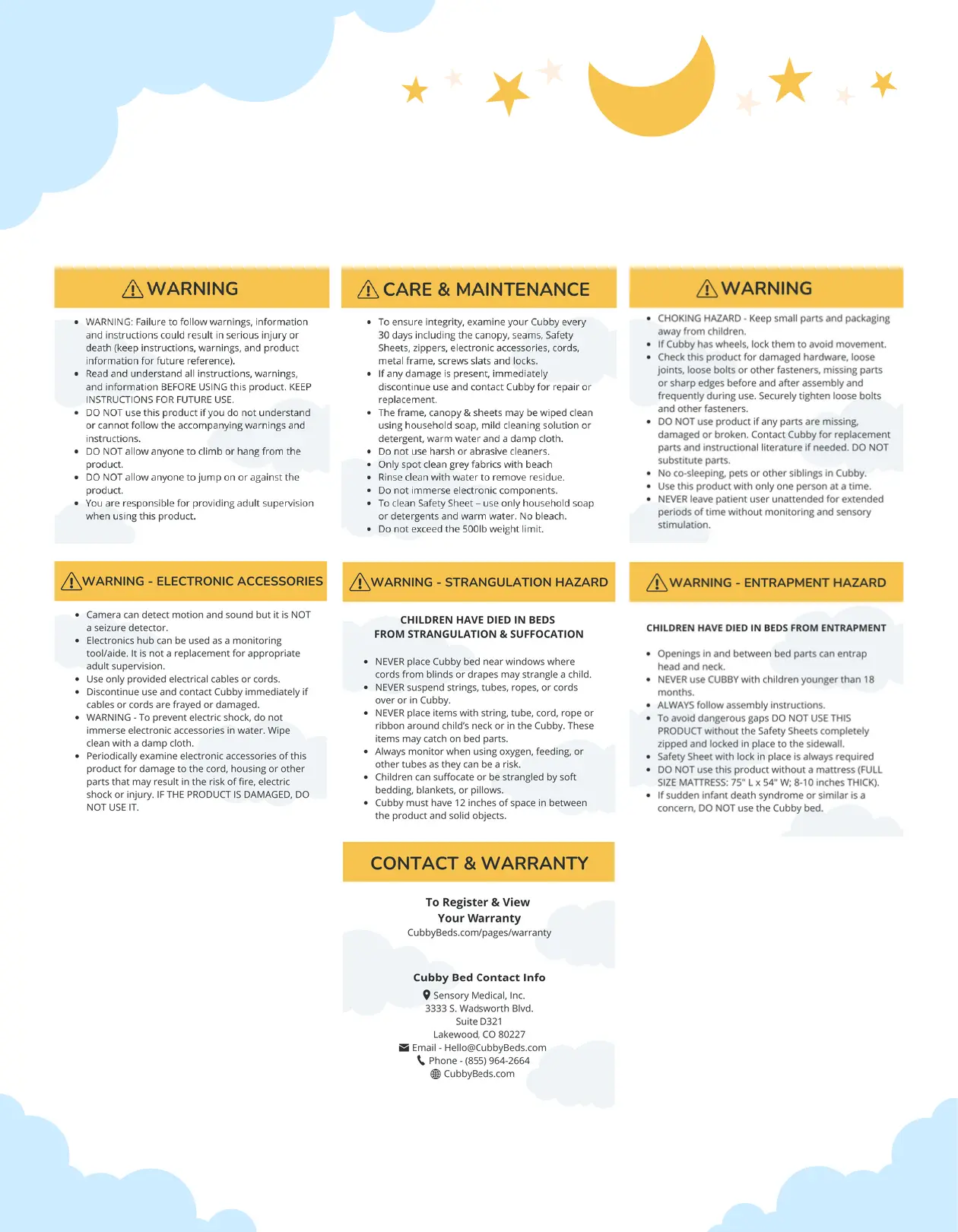 Intended Use: The Cubby Bed is an enclosed canopy bed designed for people with