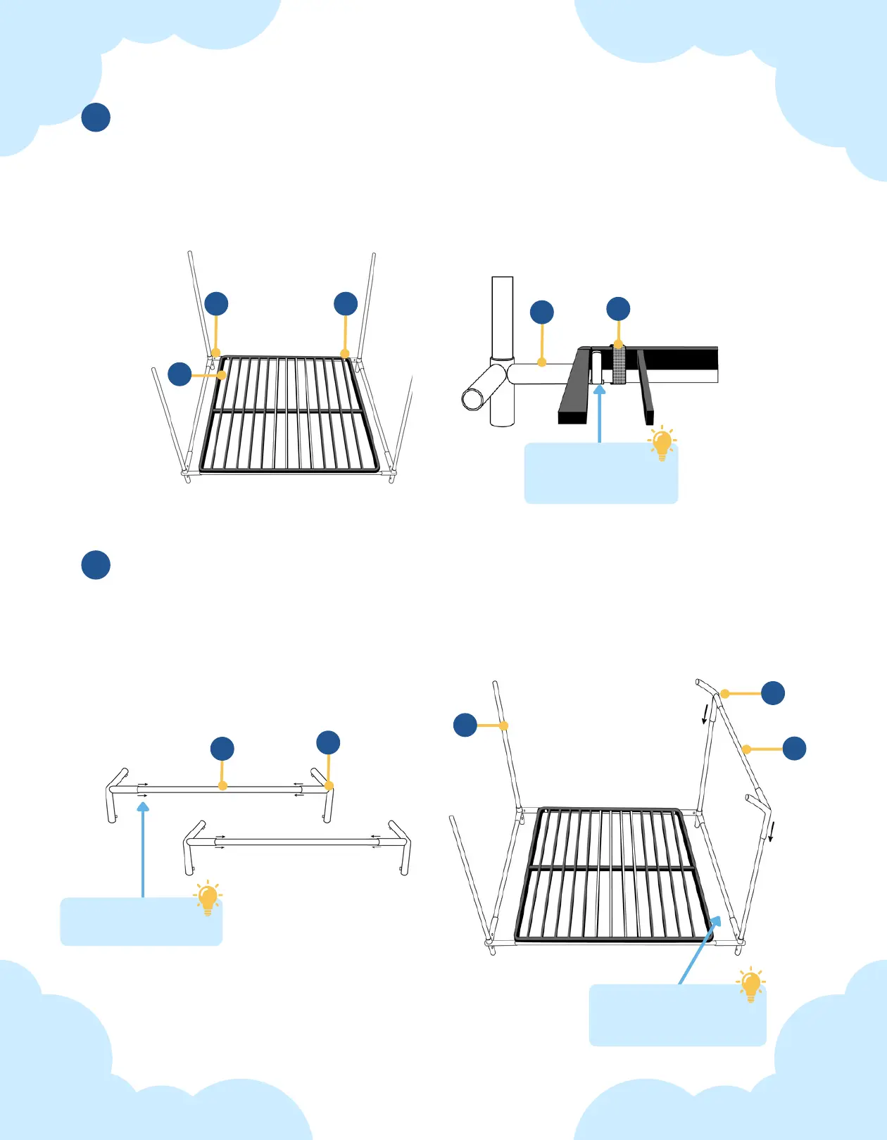 the white tape. Mount the slats onto the frame. The tabs attached to the #9 and #10