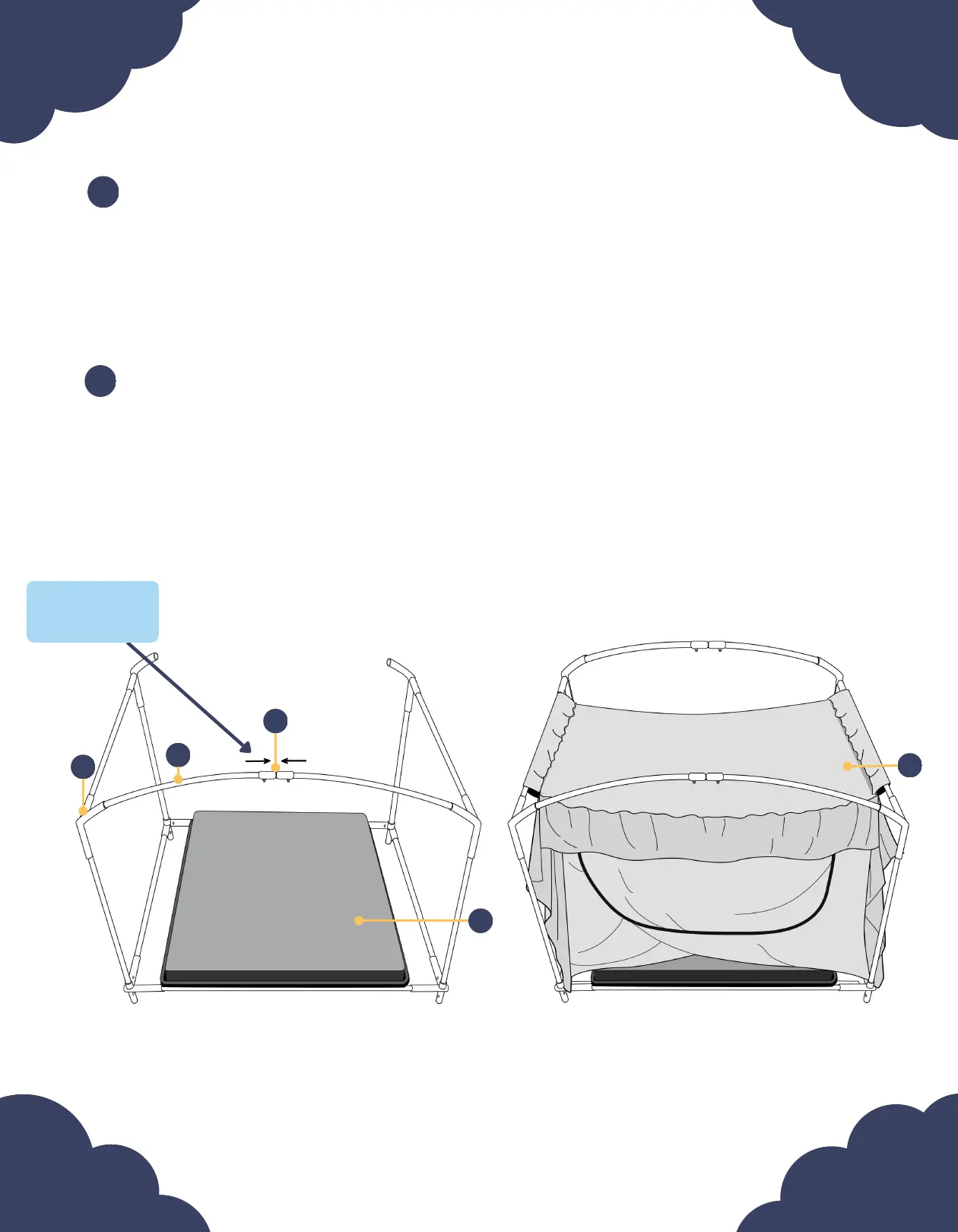 slats (#22). Orient the canopy (#11) on the frame. The Velcro skirt will be at the