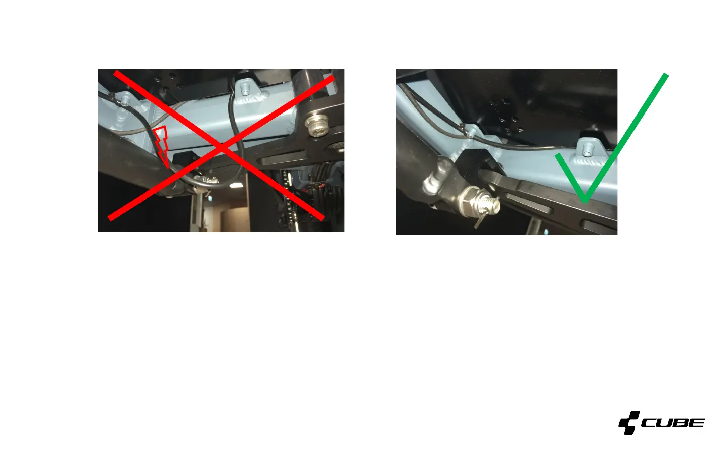 The light cable and brake hose must be routed close to the frame and must not hinder the movement of the