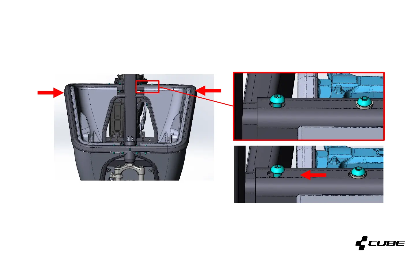 Before tightening, press the upper frame halves towards the middle of the bike and hold them in position, in order to clamp