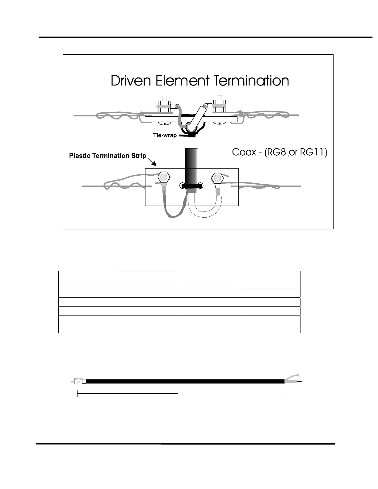 For ¾ wave lengths multiply the lengths above by a factor of 3, excess cable may be