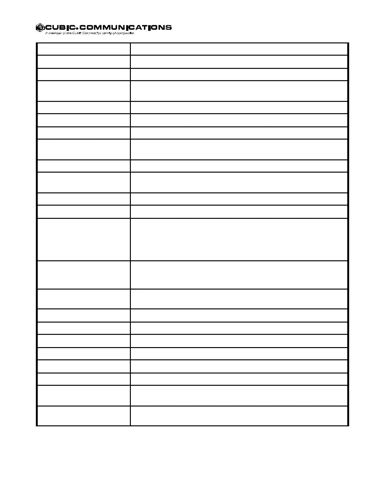 Table 1-1 CDR-3250/80 Specifications-Cont.