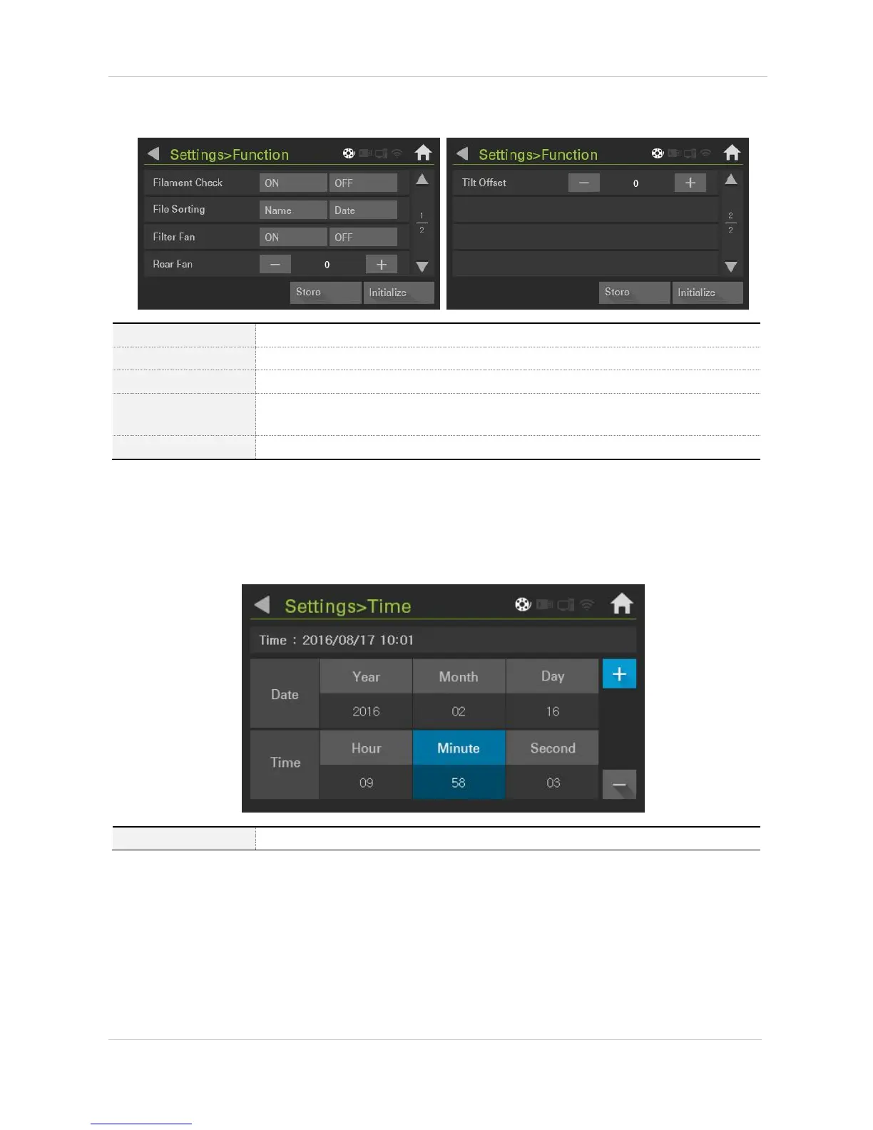 Configures nozzle and bed interval. Narrows nozzle and bed interval with - button