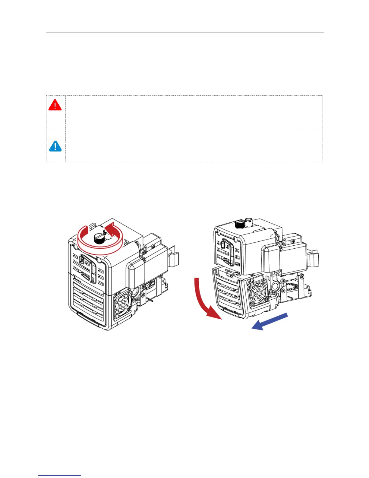 Make sure to proceed the detachable extruder separation/installation when the printer power is OFF and