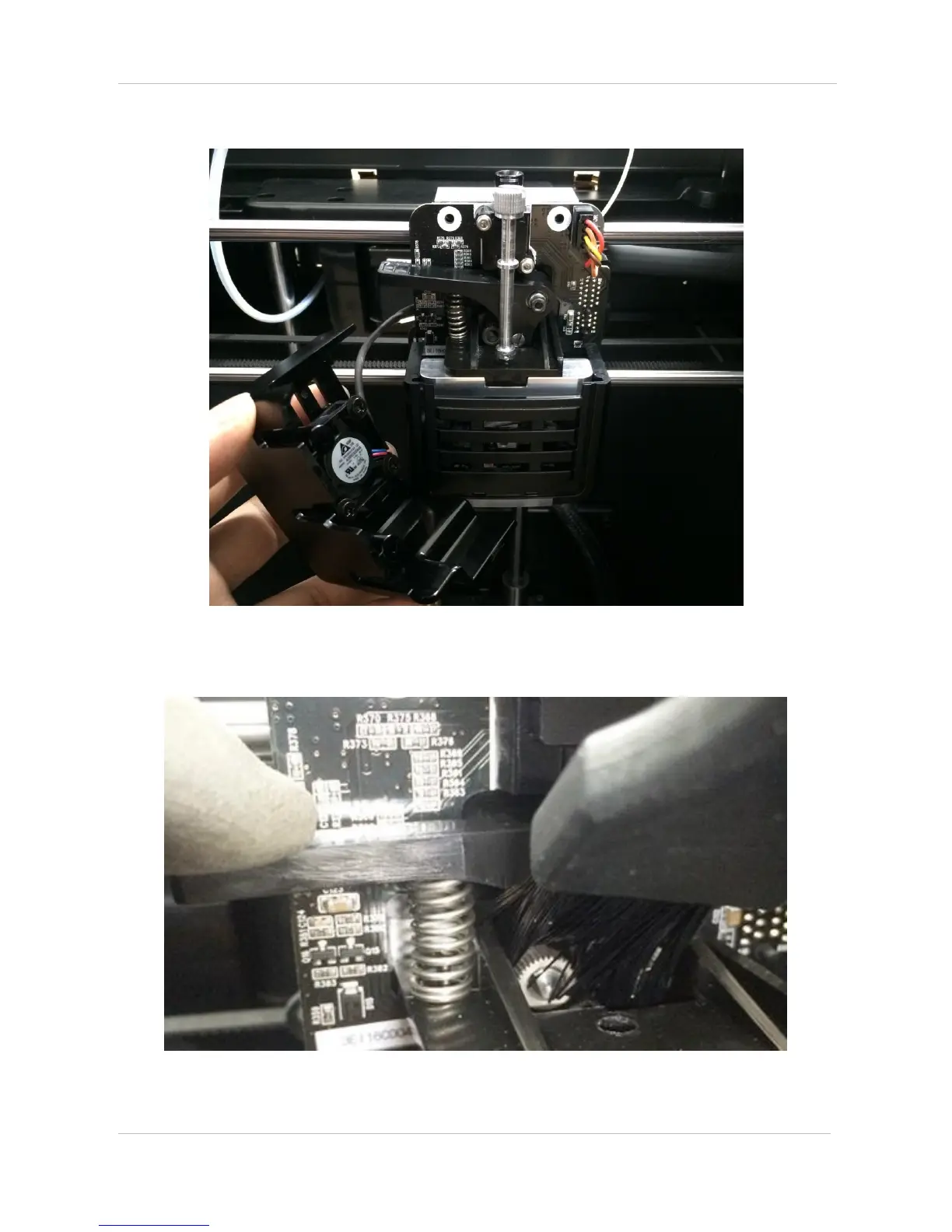 Be mindful of a gear fan, which is installed to the cover and separate the cover. Then remove all filament
