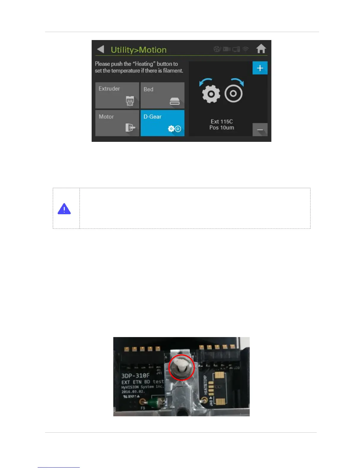 The extruder gear can be rotated with D-gear of motion by turning the power ON in the extruder pullout condition.