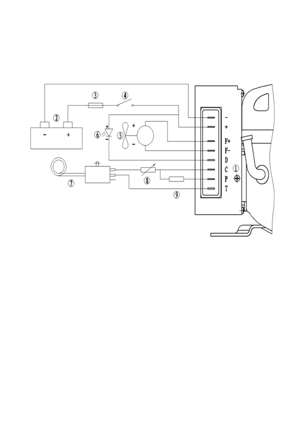 As shown in Figure 1. (5), the positive side of the fan is connected to the (F +) end of the controller, and the