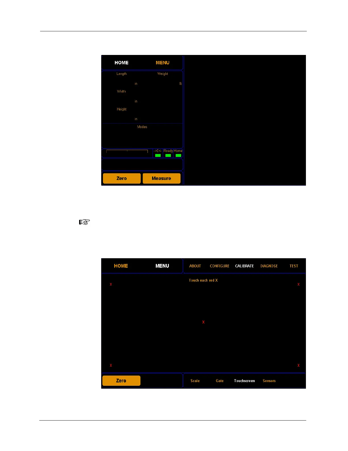 CubiScan 125 - Figure 48 Touchscreen Calibration; Figure 47 Home Screen