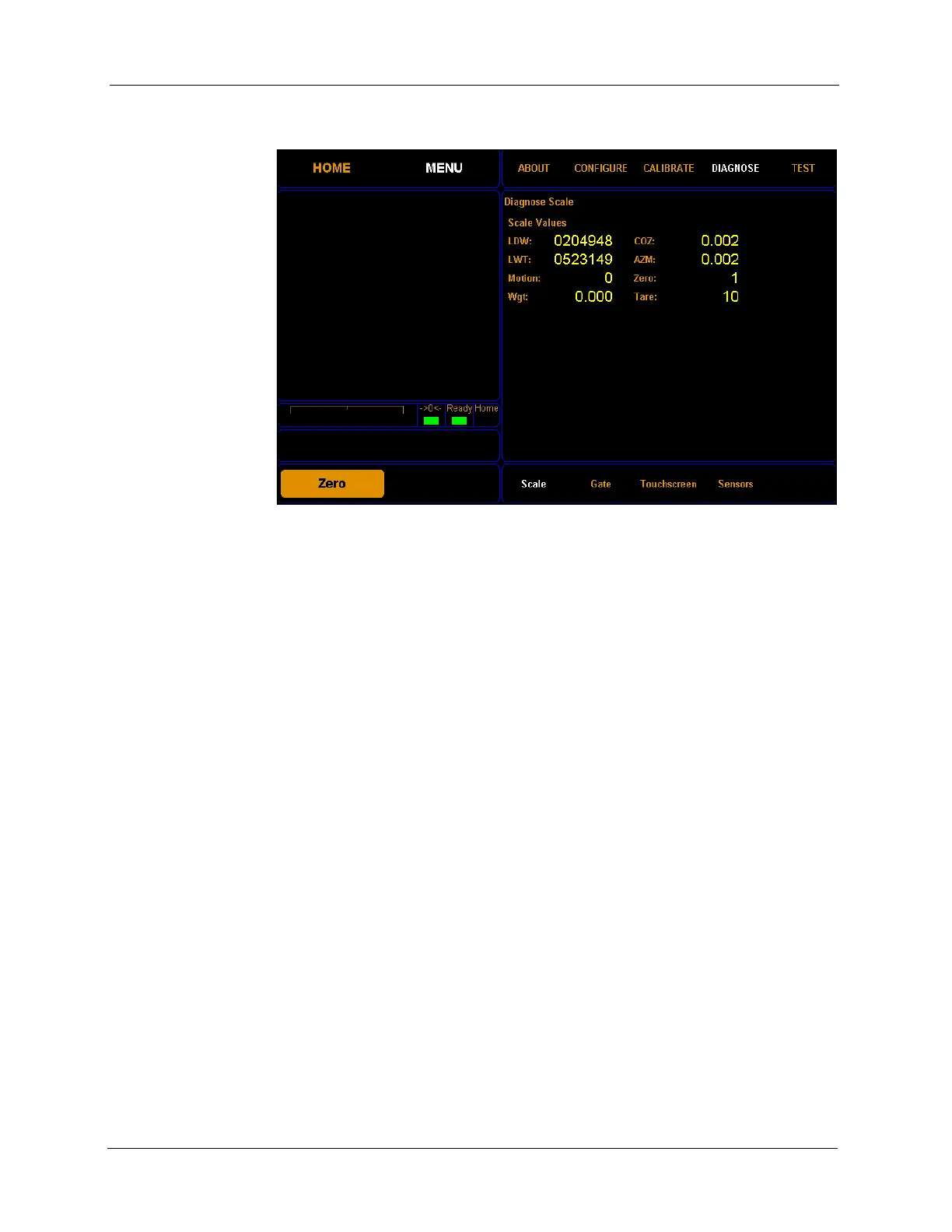 Zero This field displays whether there is weight on the scale or not.