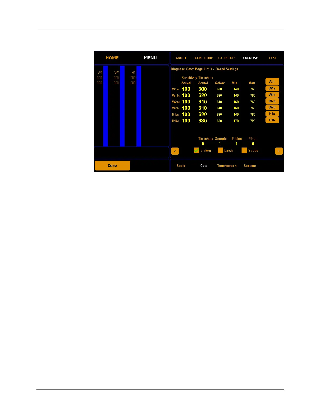 2. Tap DIAGNOSE. Select the Gate option if it is not already selected.