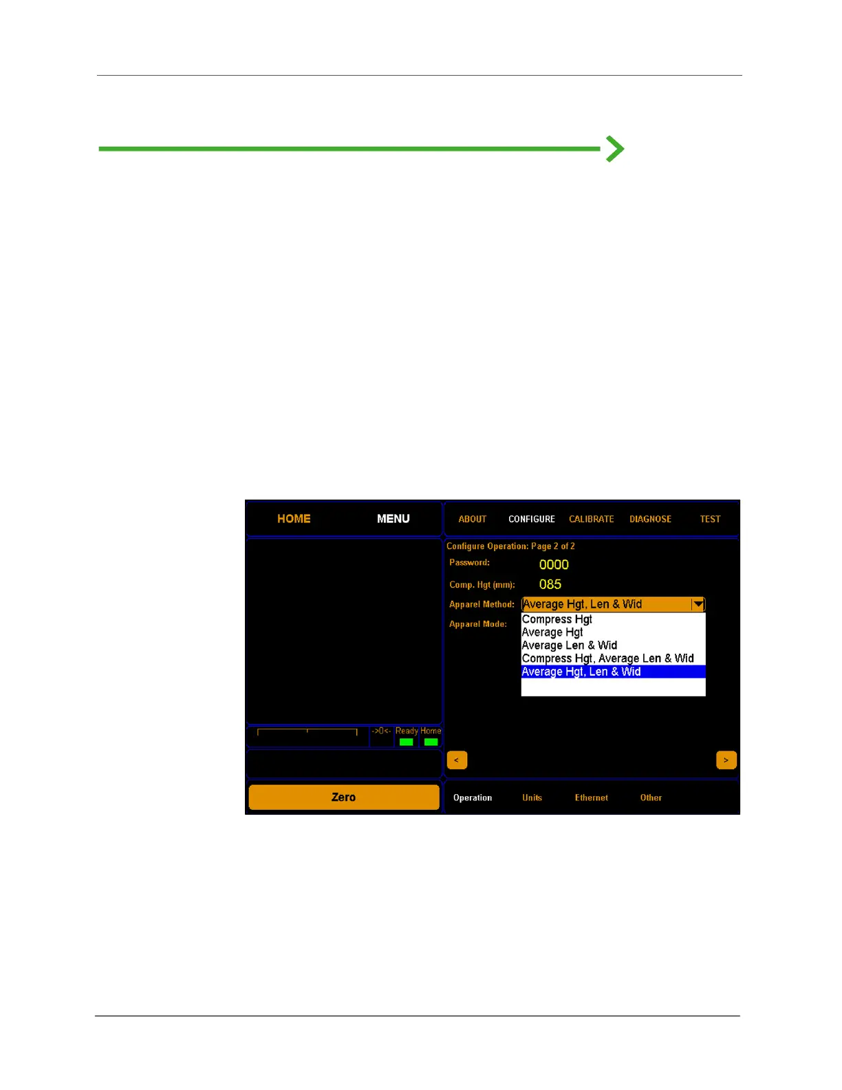 1. On the Menu > Configure > Operation screen, touch the right arrow