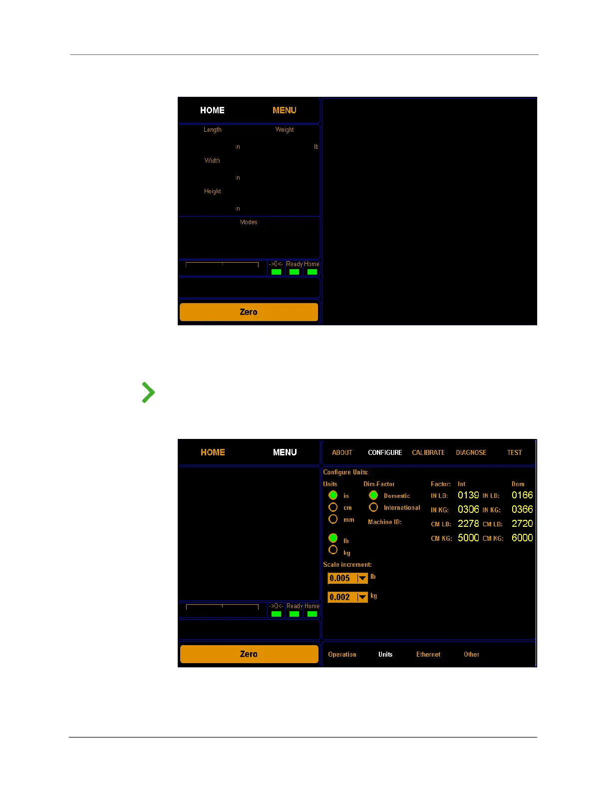 2. Tap CONFIGURE. Select the Units option if it is not already selected.