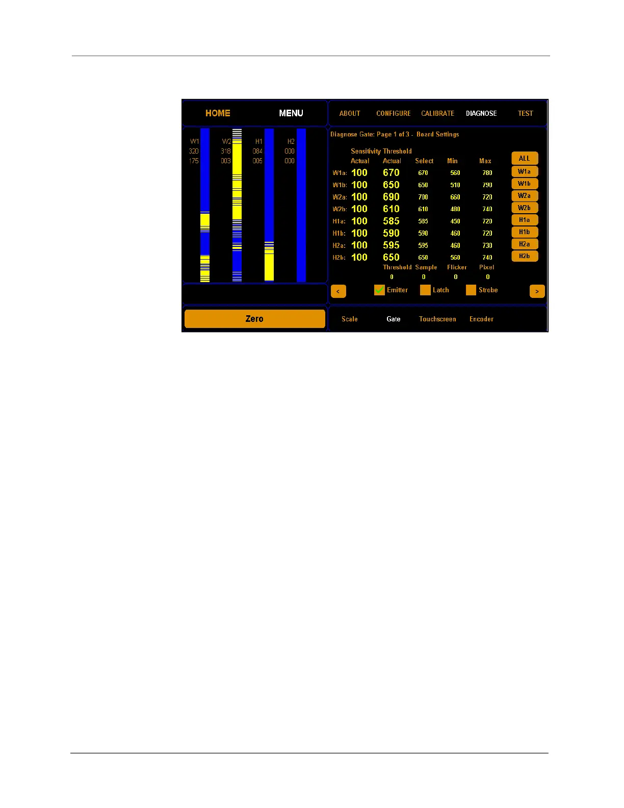 From this screen you can view the sensitivity threshold board settings.