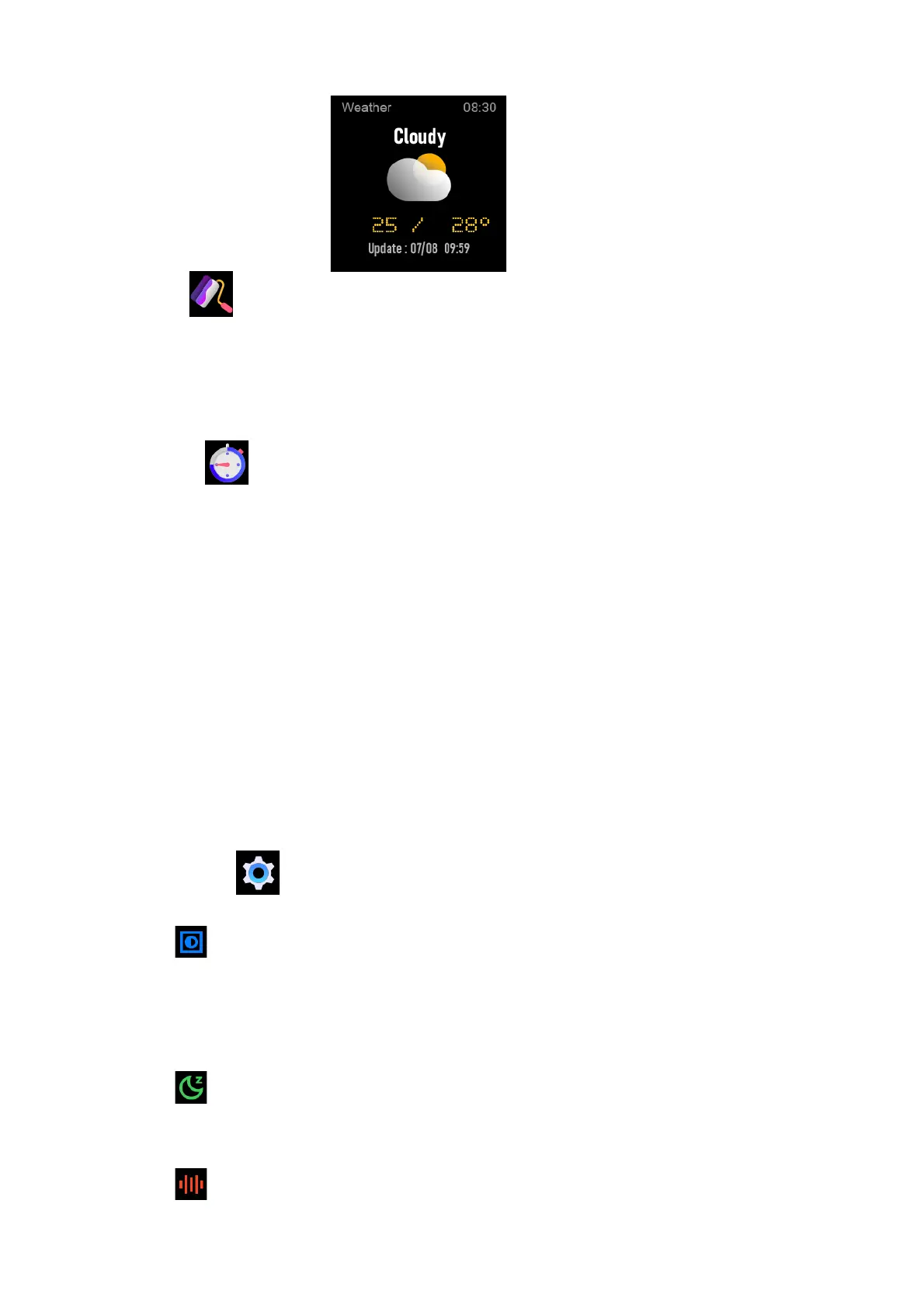 clic en el icono estático para cambiar de la pantalla reloj a la