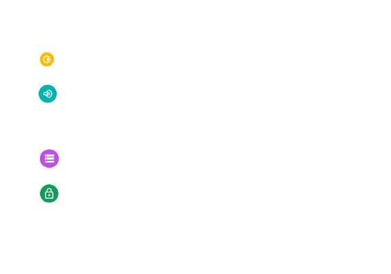 Brightness, Auto rotating screen, Wallpaper, Screen Timeout