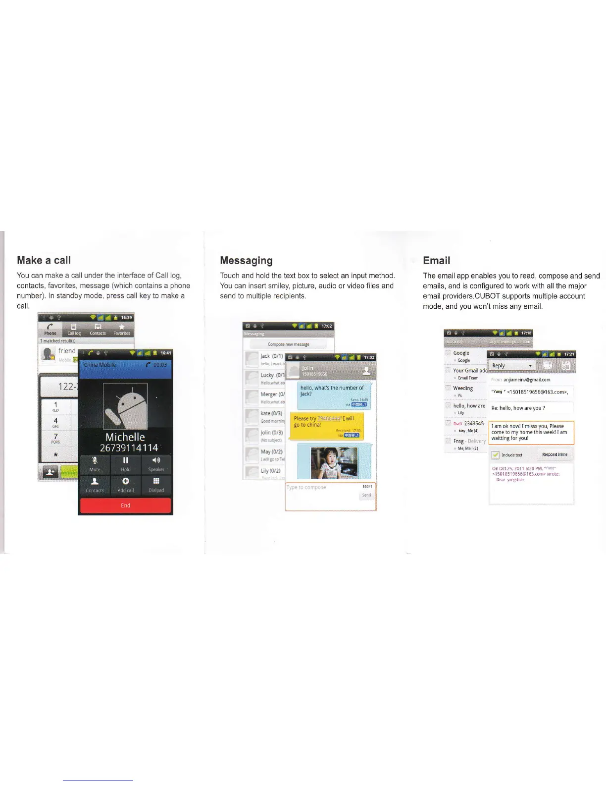 Cubot S308 - Communication Tools; Making Calls; Messaging; Email Management