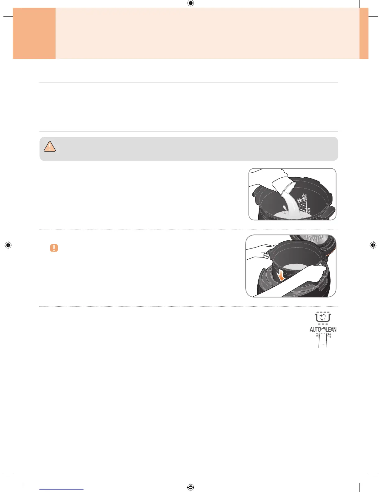 请使用计量杯加水至内锅自动清洗的水位刻度。