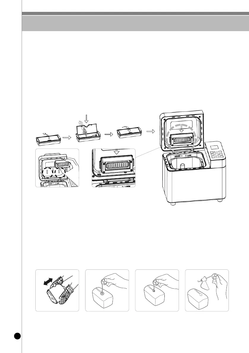 read maker. Pour the nuts or seeds in the dispenser, then install it below the lid. After installation, close the lid