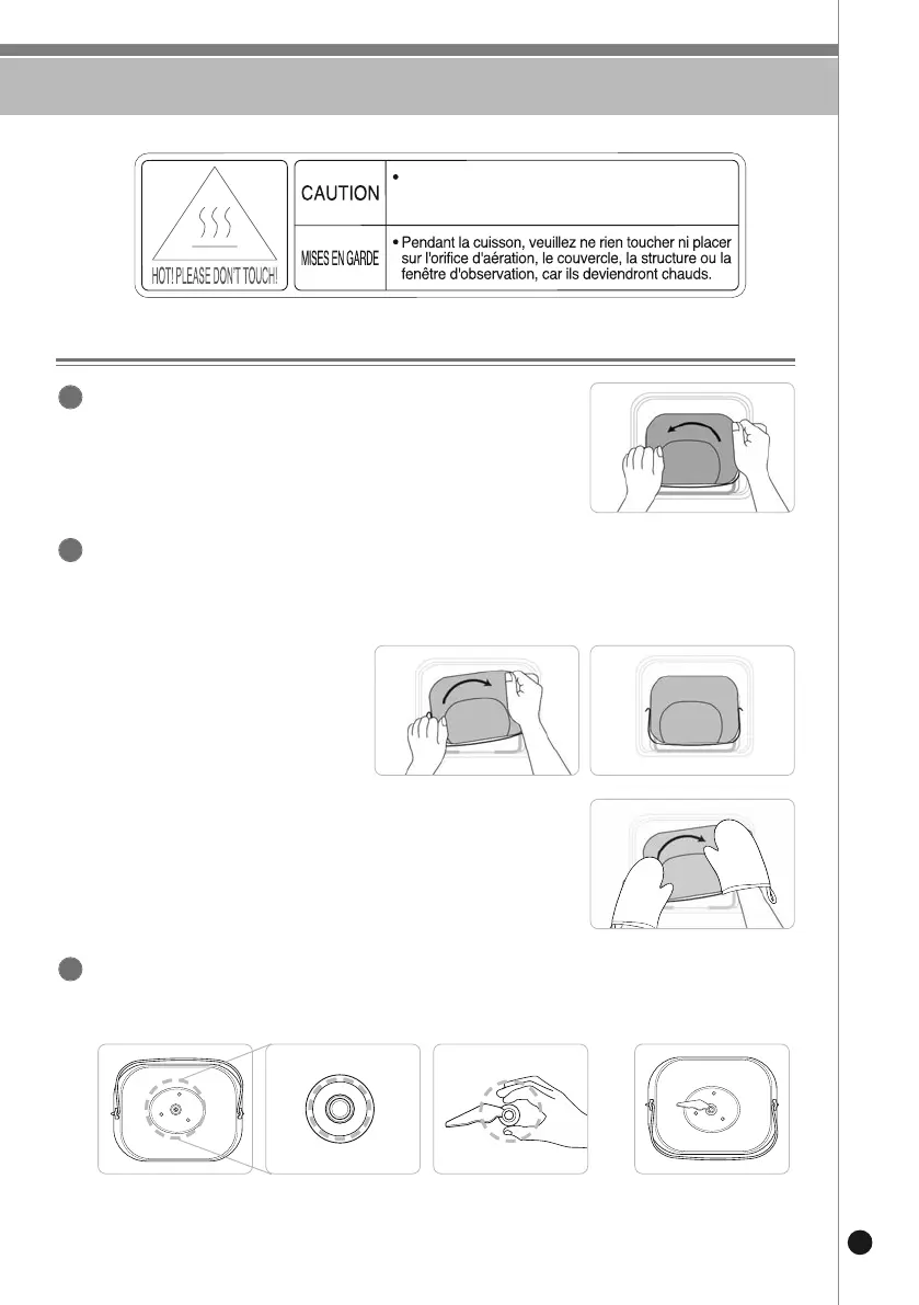 CAUTION : Use oven mitts or gloves to handle the baking pan