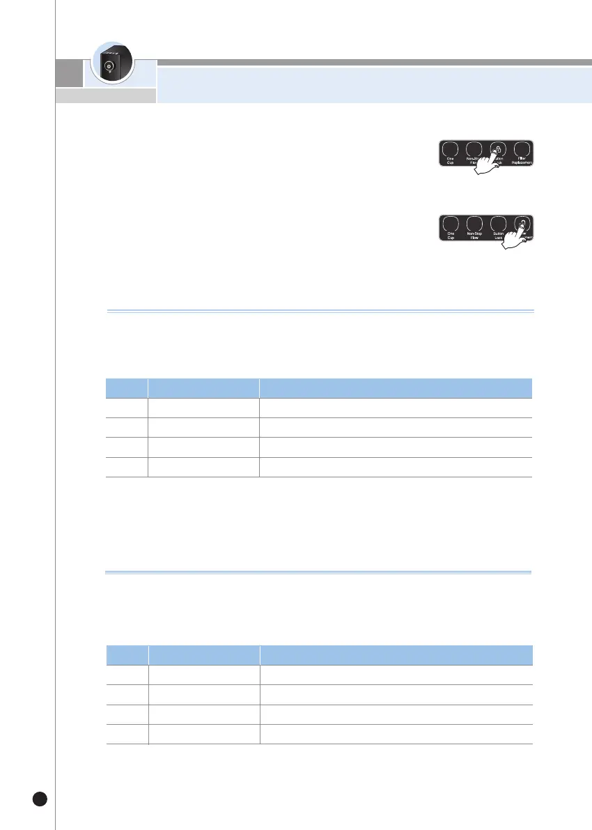 Non-Stop Flow, du mode Verrouillage et du mode Remplacement de filtre (La quantité par défaut est de 150 cc).