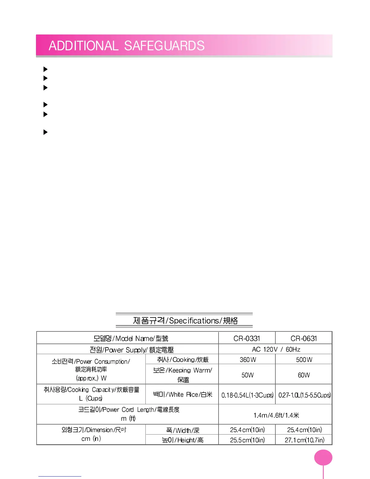 (3) the longer cord should be arranged so that it will not drape over the counter top or tabletop