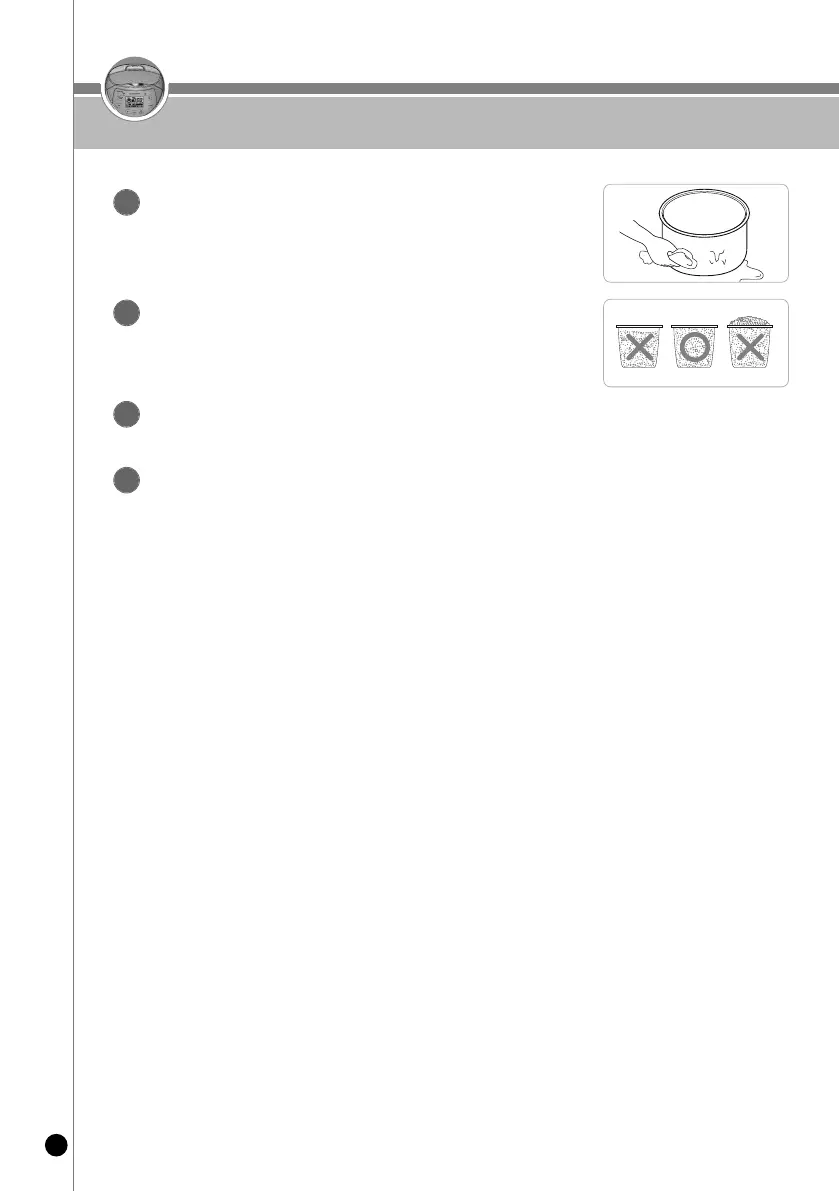 ▶ Place the inner pot on a flat surface and adjust the water amount up to the water level line.