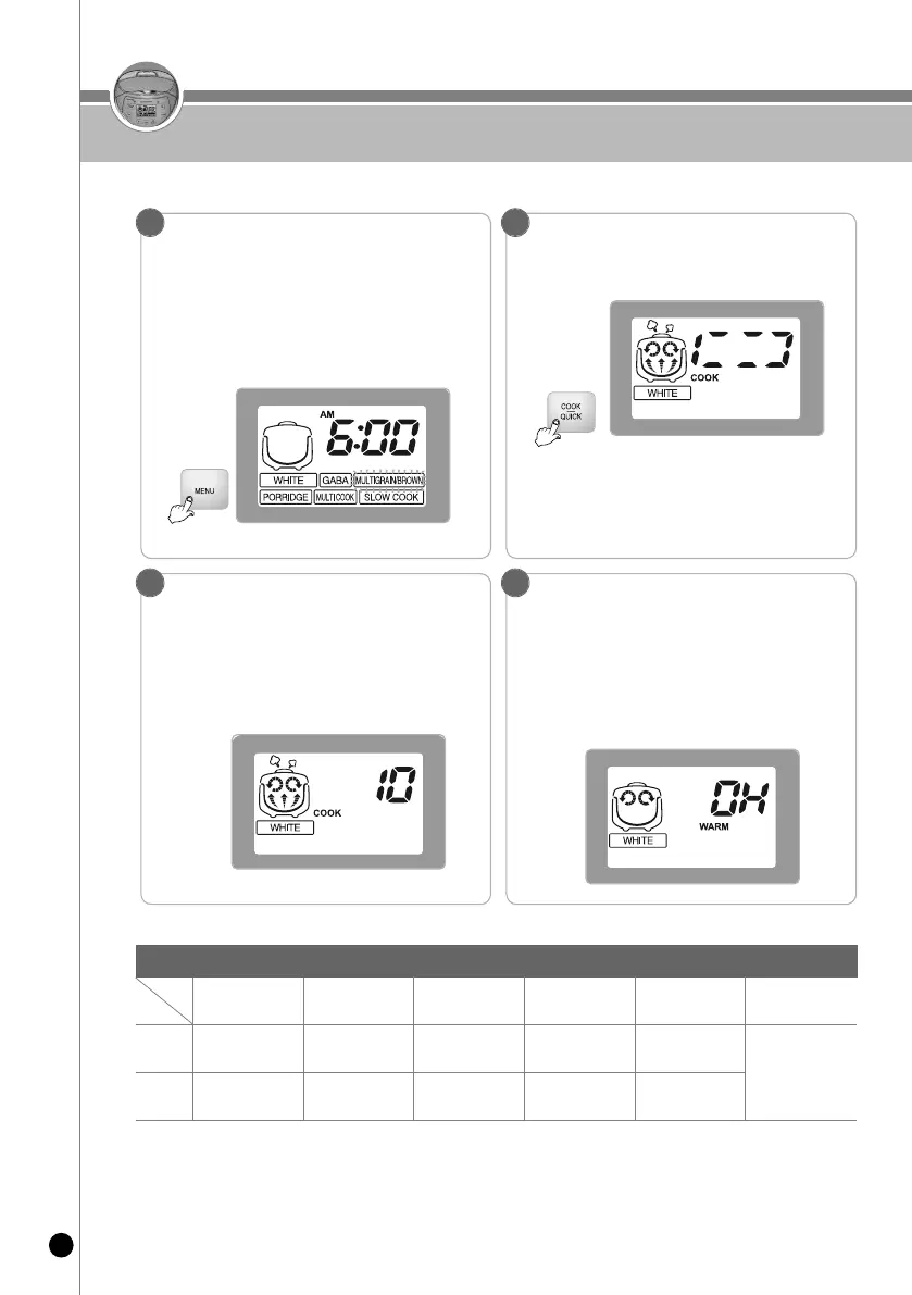 ▶ If you cook rice after using the MULTI COOK menu option, an odor may develop.