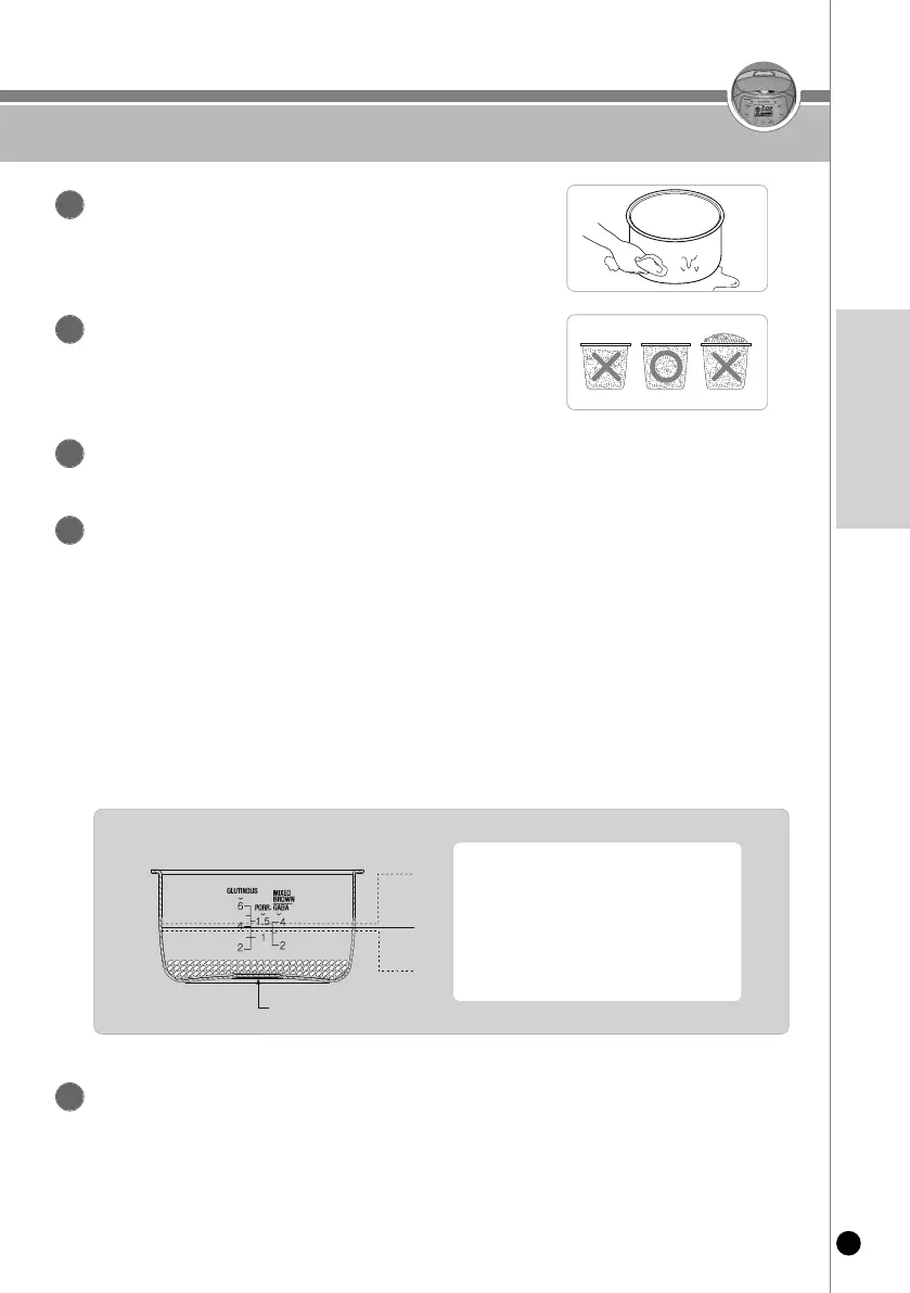 내솥은 깨끗이 씻은 후 물기를 닦습니다.