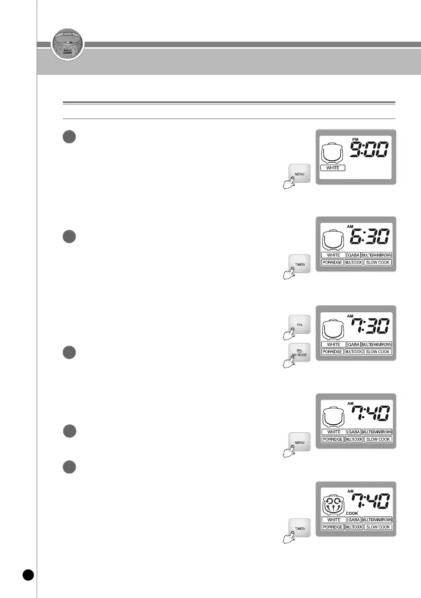 “시”, “분/맞춤밥맛” 버튼으로 취사완료 시각을 설정 합니다.