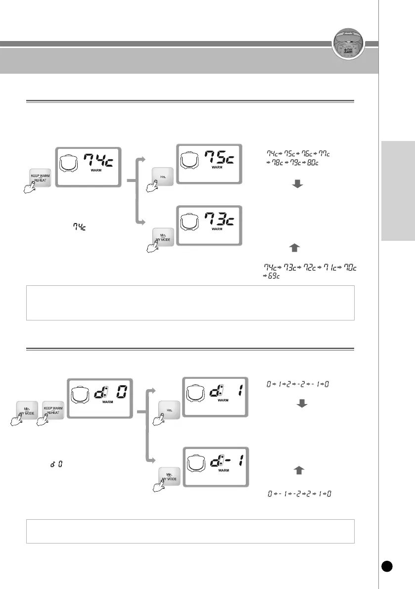 보온중 보온온도를 조정하실 때에는 보온 버튼을 5초 이상 누른 후 보온 온도를 조정하십시오.