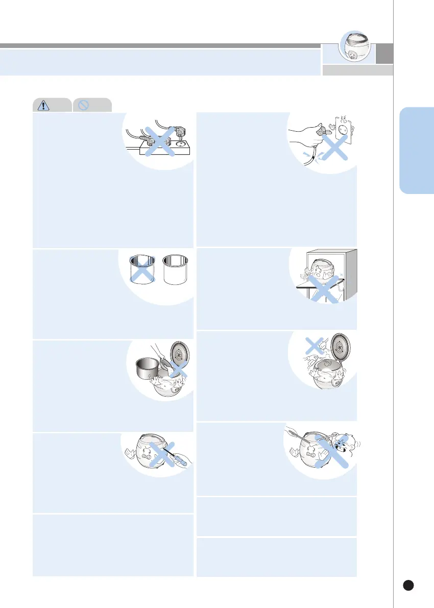 •내솥을 떨어뜨렸거나 변형된 경우는 구입하신 대리점이나