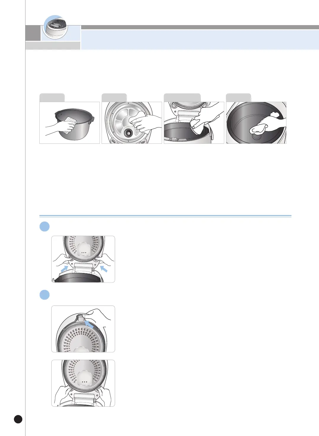 - 청소를 잘하지 않으면 보온 중 냄새가 나는 원인이 됩니다. 특히 뚜껑부는 자주 청소해 주십시오.